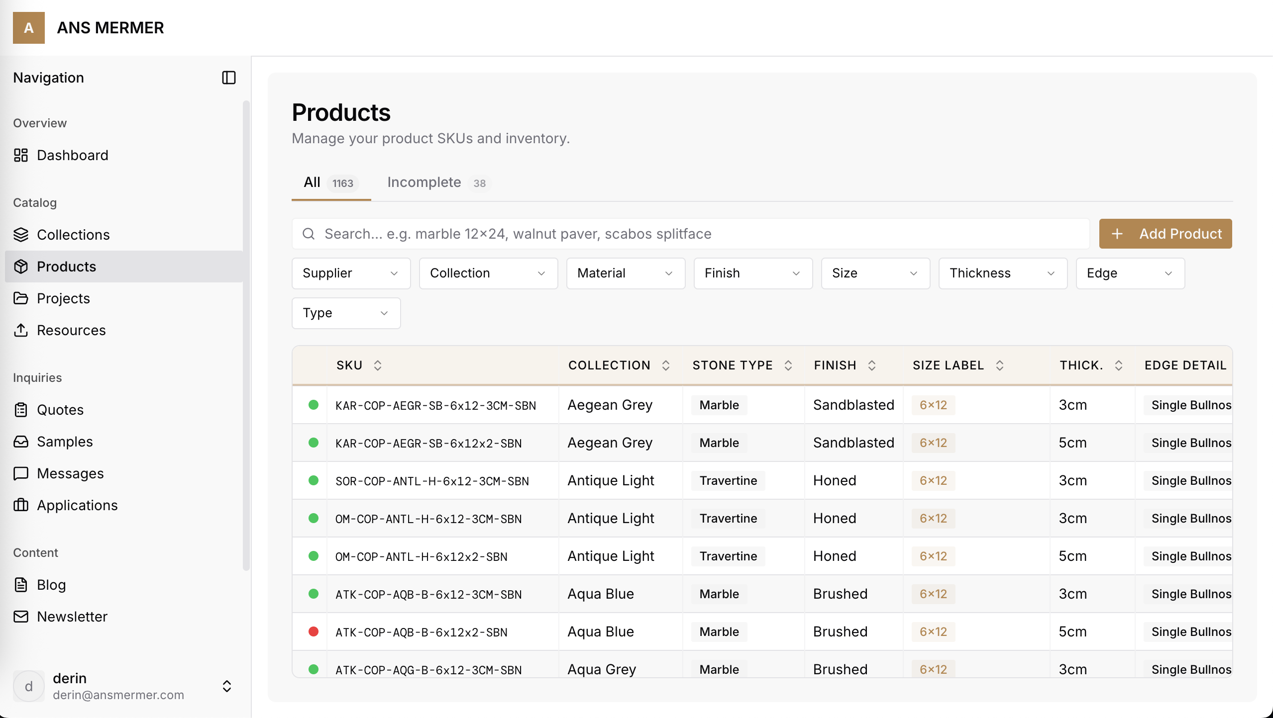 We believe stone businesses deserve digital tools built by people who know the difference between a slab and a tile, who understand what architects need to see before specifying a material, and who’ve managed inventory across yards and warehouses.